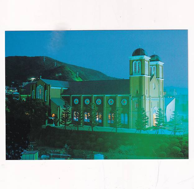 Stan jak na skanie, bez obiegu.Zestaw 10 pocztówek z wnętrza i okolic katedry.W tym mapka,opis w języku japońskim oraz tekstem homiliiArcybiskupa Joseph M.TAKAMI