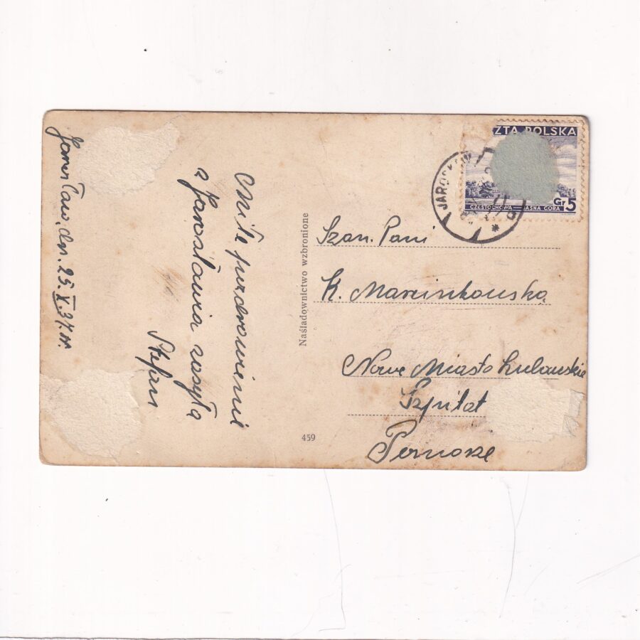 Stan jak na skanie,z obiegu. Znaczek i stempel. Pocztówka była przyklejona