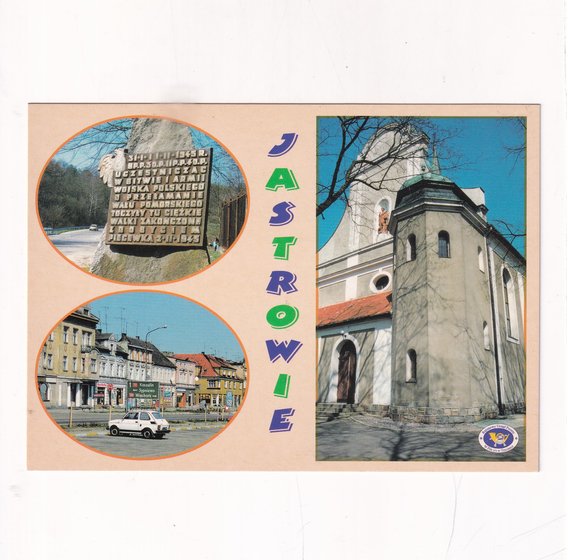 JASTROWIE CENTRUM KOŚCIÓŁ ŚW.MICHAŁA ARCHANIOŁA PIECEWKO GŁAZ PAMIĄTKOWY POCZTÓWKA A20000