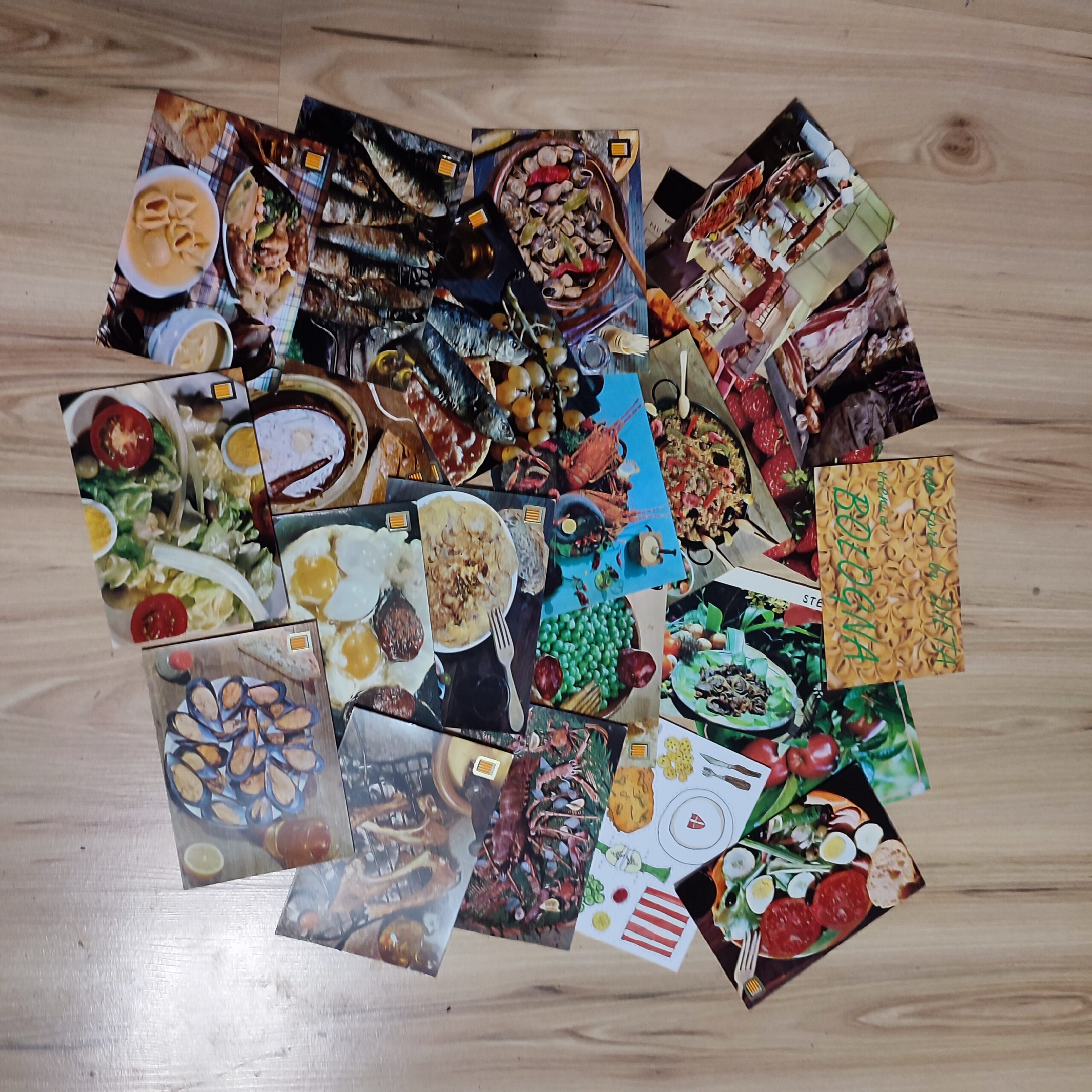 JEDZENIE KRABY MAŁŻE MAKARON JAJKA RYBY POCZTÓWKA ZESTAW 25sztuk A7163