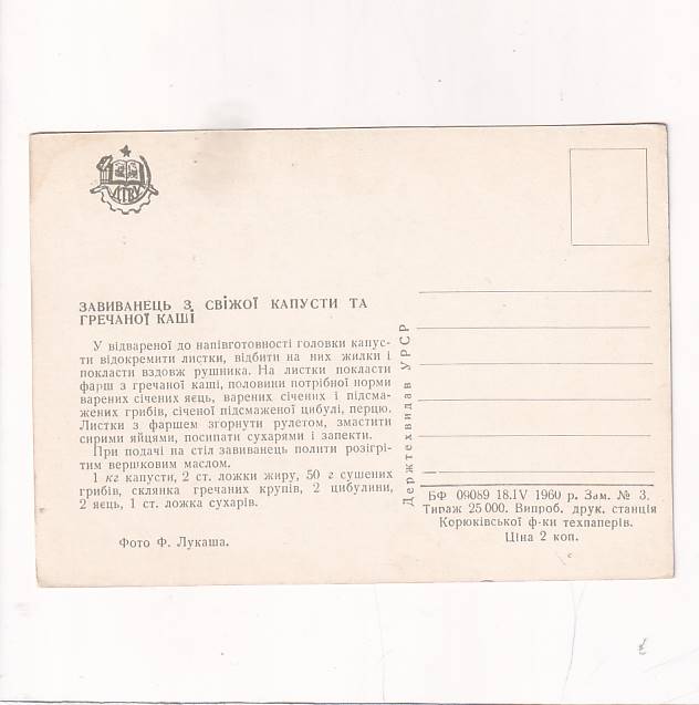 JEDZENIE OBIAD KAPUSTA KASZA POCZTÓWKA A28987