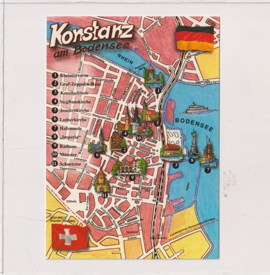 / JEZIORO BODEŃSKIE KONSTANZ MAPKA POCZTÓWKA A3278