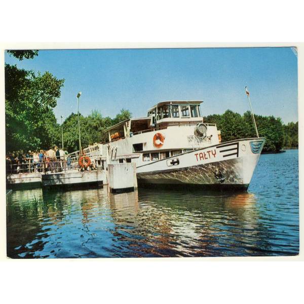 Przystań Żeglugi Mazurskiej nad Jeziorem Guzianka, statek Tałty