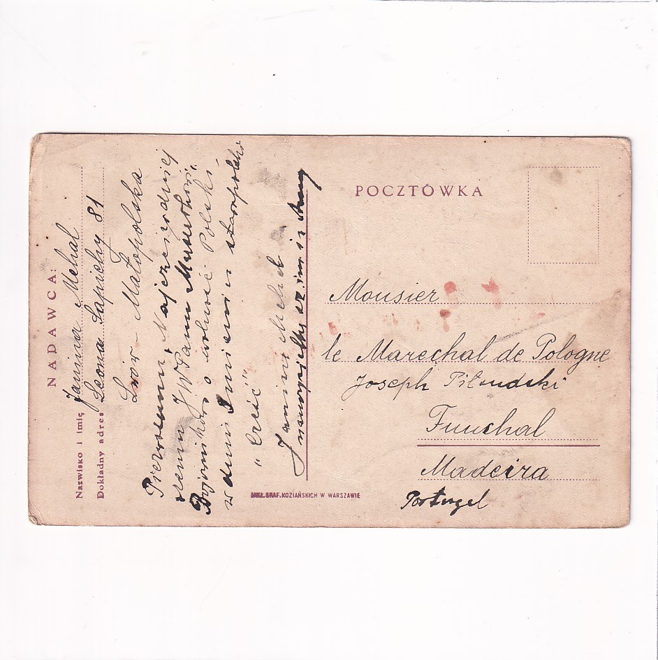 Bardzo ciekawa korespondencja – Od Janiny Mehal do ….Józefa Piłsudskiego ktory w owym czasie przebywał na Maderze!