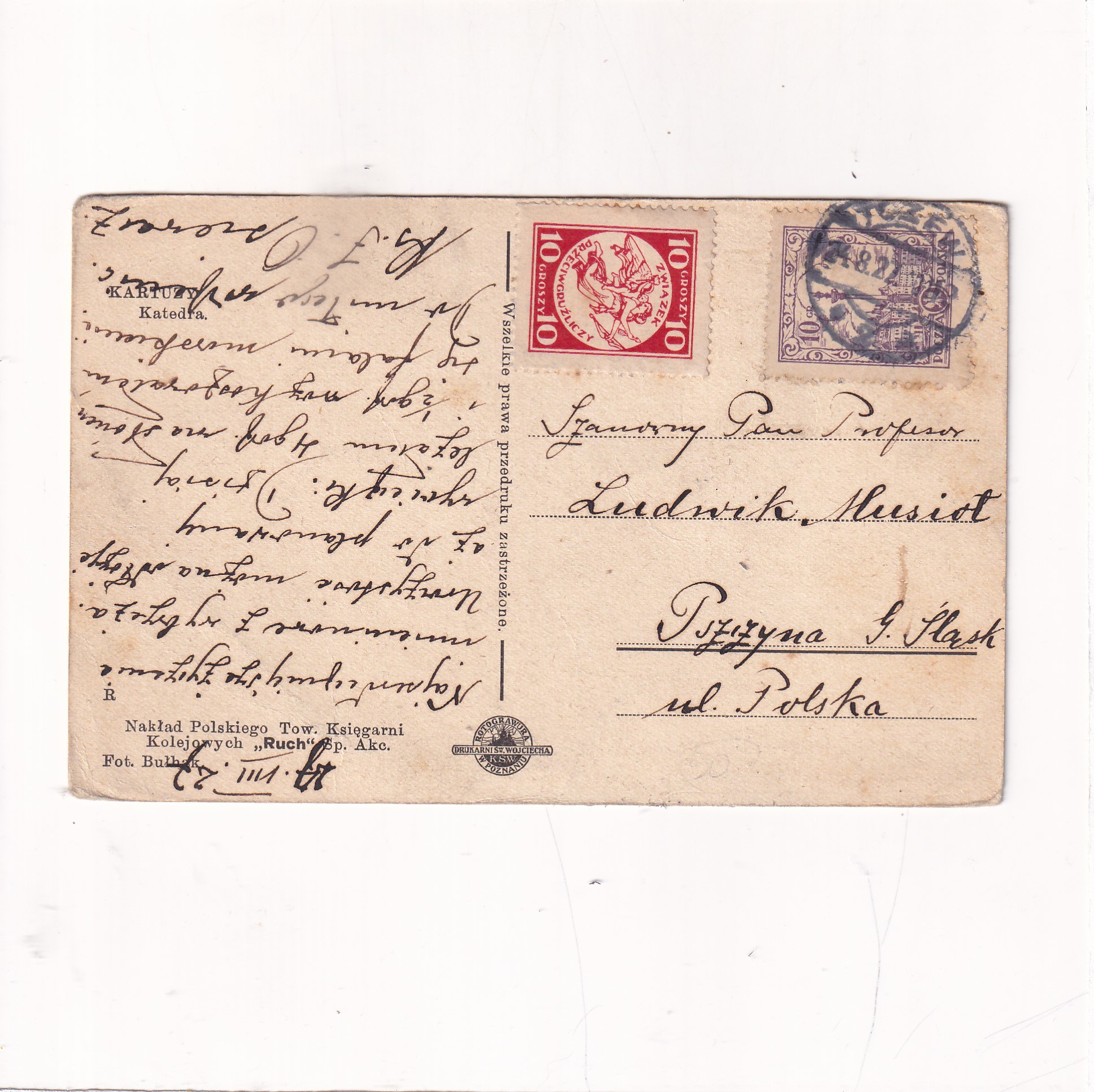 Stan jak na skanie, z obiegu . Format:14*9cm.Wysłano w 1927r