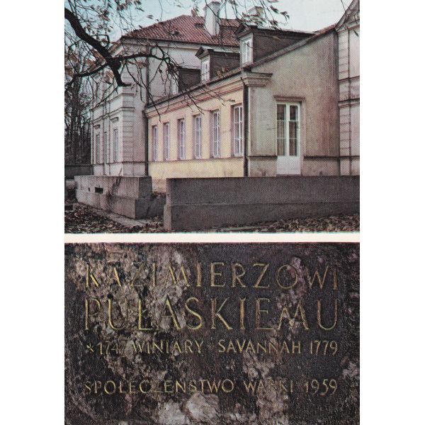 Muzeum im. Kazimierza Pułaskiego w Warce-Winiarach, w budynku wzniesionym na przełomie XVIII i XIX w. na miejscu dawnego pałacu Pułaskich, gdzie 4 marca 1747 r. urodził się bohater spod Savannah. Tablica z pamiątkowego obelisku, ufundowanego przez społeczeństwo Warki w 1959 r.