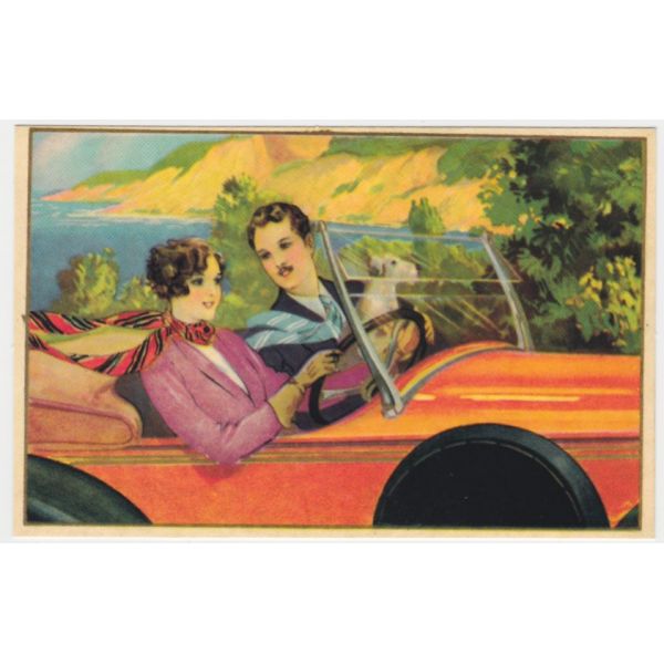KOBIETA I MĘŻCZYZNA STARY SAMOCHÓD POCZTÓWKA REPRINT A50685