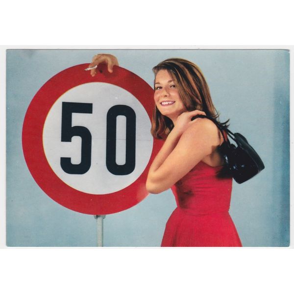 KOBIETA I ZNAK DROGOWY POCZTÓWKA A46248