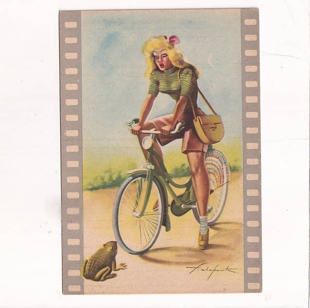 KOBIETA ROWER ŻABA POCZTÓWKA A24079