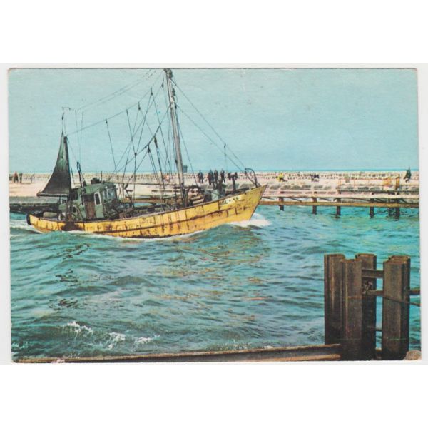 Kuter rybacki w kanale portowym