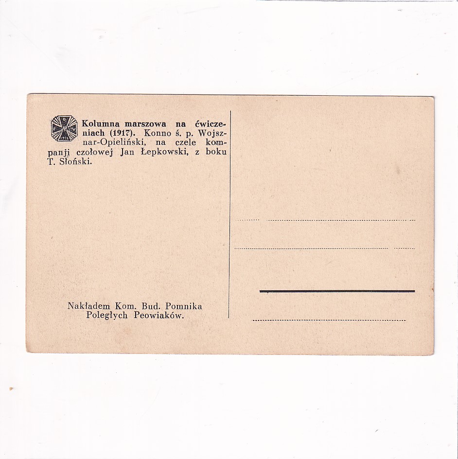 KOLUMNA MARSZOWA NA ĆWICZENIACH 1917r. KONNO ŚP. WOJSZNAR-OPIELIŃSKI POCZTÓKA A17711