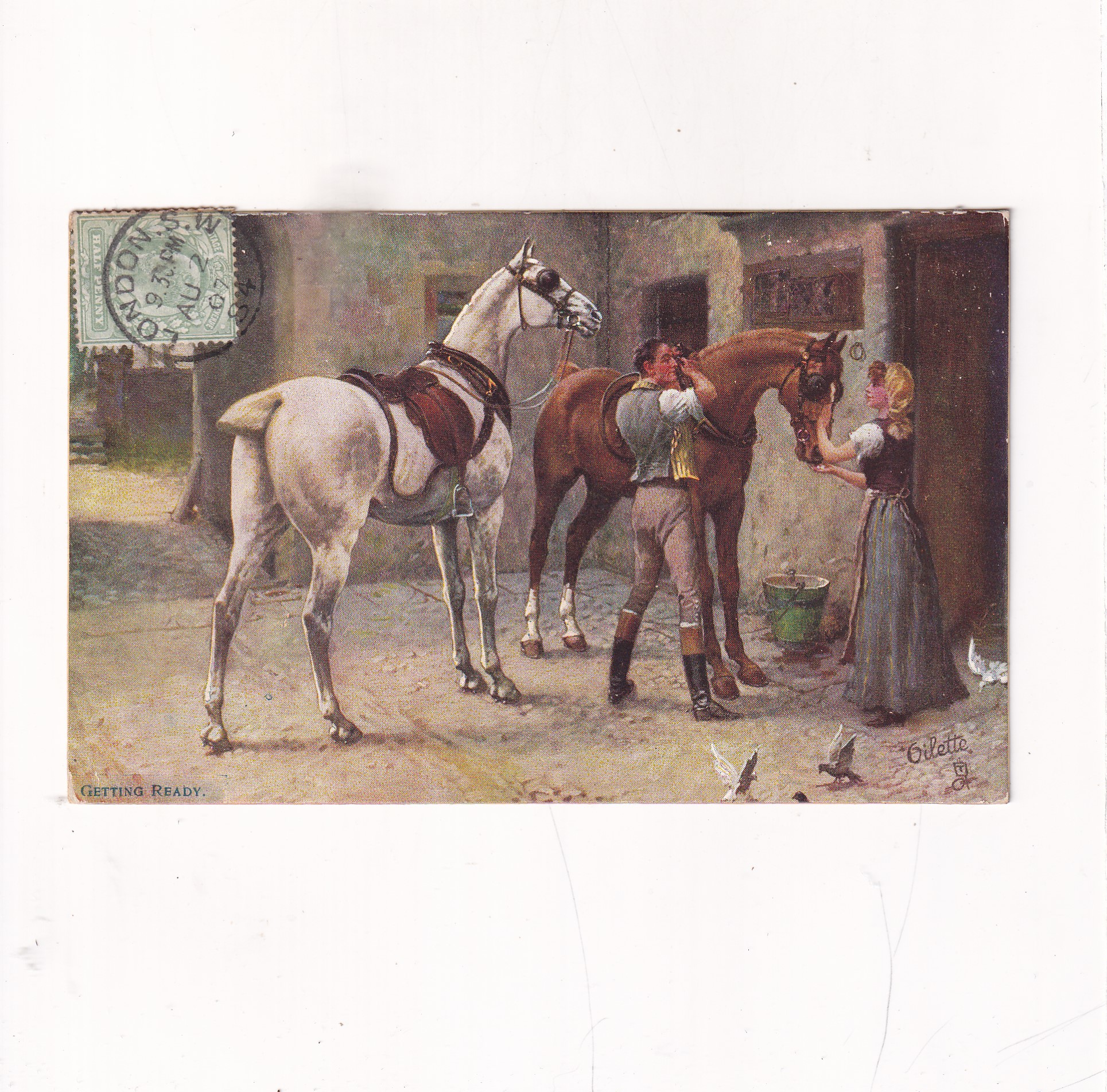 KOŃ KONIE KOBIETA MĘŻCZYZNA GOŁĘBIE POCZTÓWKA A17205