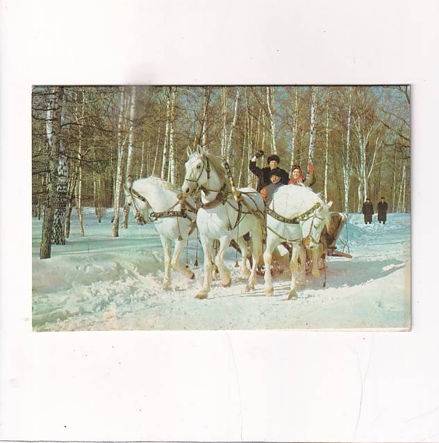 KOŃ KONIE ROSJA TROJKA ZIMA KARNET POCZTÓWKA A26950