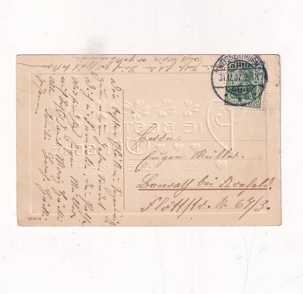 Stan jak na skanie, z obiegu-1907r. Stan BDB. Wyd: Niemcy. Format:14*9cm. Tłoczona,bardzo urokliwa.