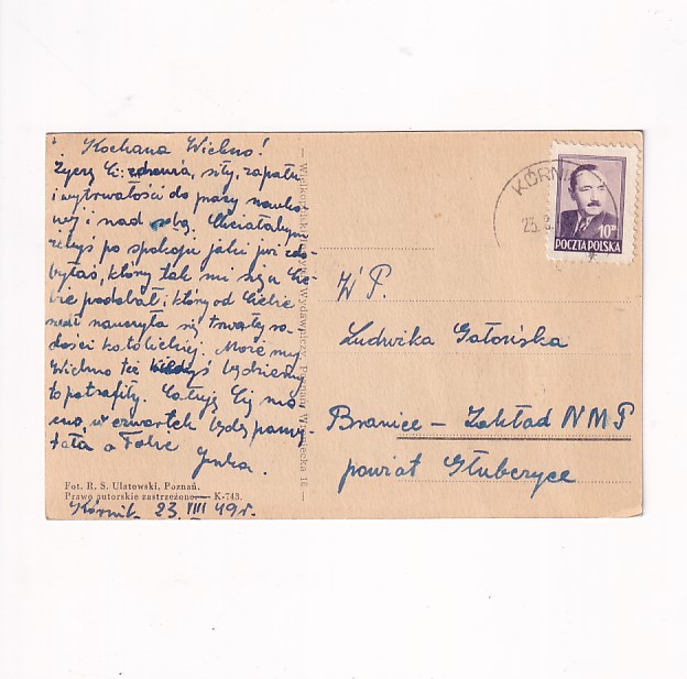 Stan jak na skanie,z obiegu. Format:14*9cm. Wydawniczy Instytut Wydawniczy. Wysłano w 1949r.