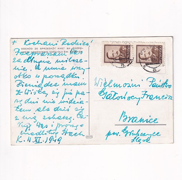 Stan jak na skanie, z obiegu .Znaczek i stempel. Wysłano w 1949