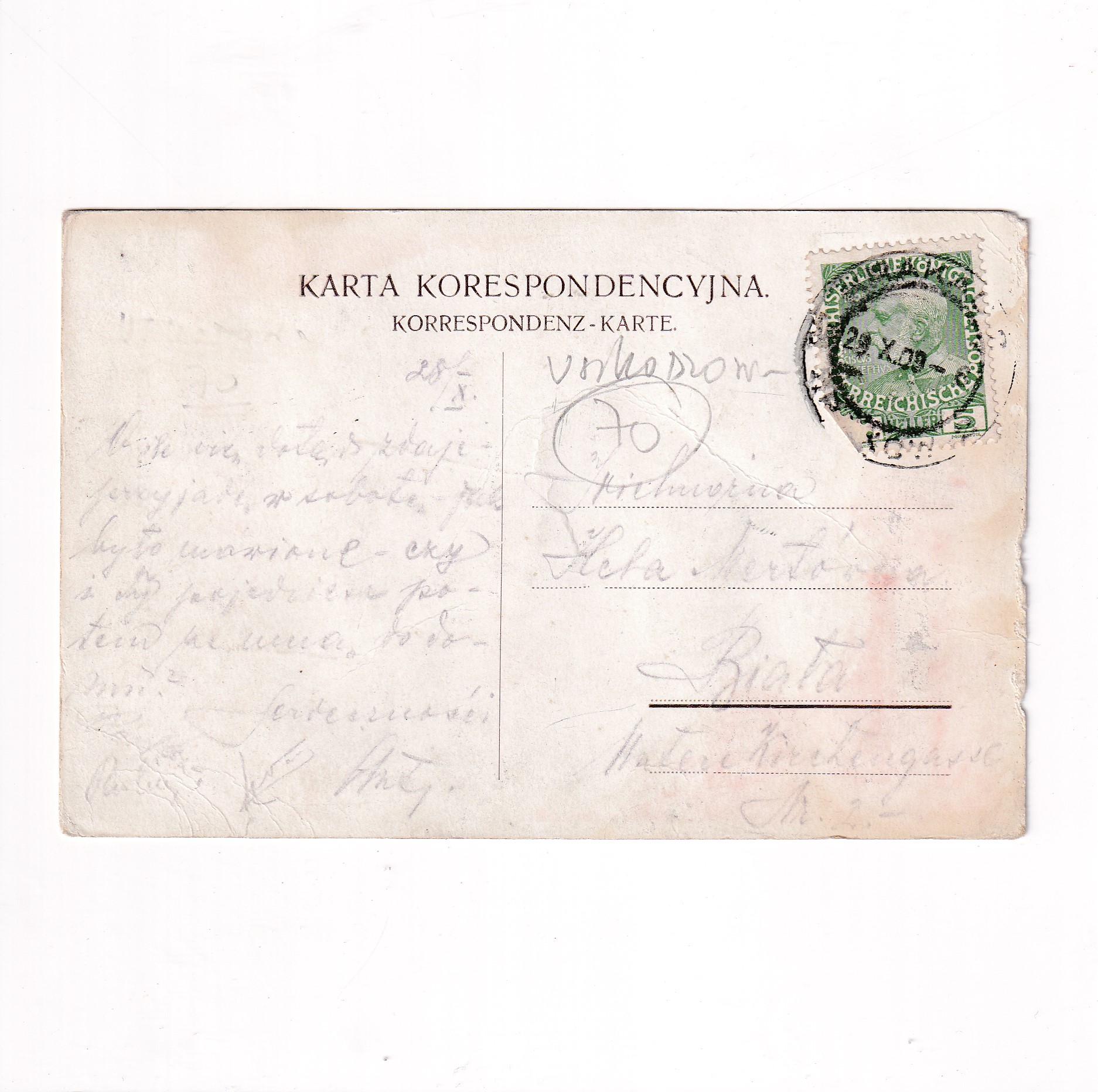 Stan jak na skanie, z obiegu. Znaczek i stempel. Rok 1909