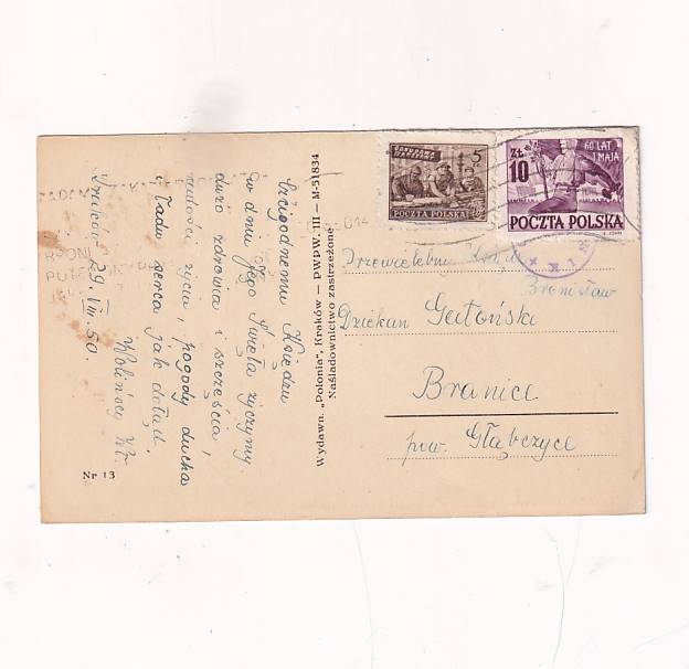 Stan jak na skanie, z obiegu.Format:14*9cm.Wysłano w 1950r