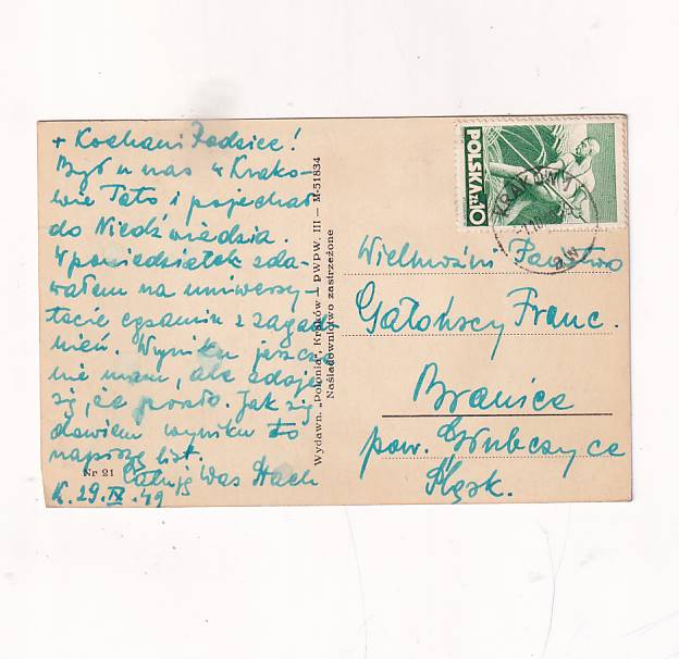 Stan jak na skanie, z obiegu.Format:14*9cm.Wysłano w 1949r