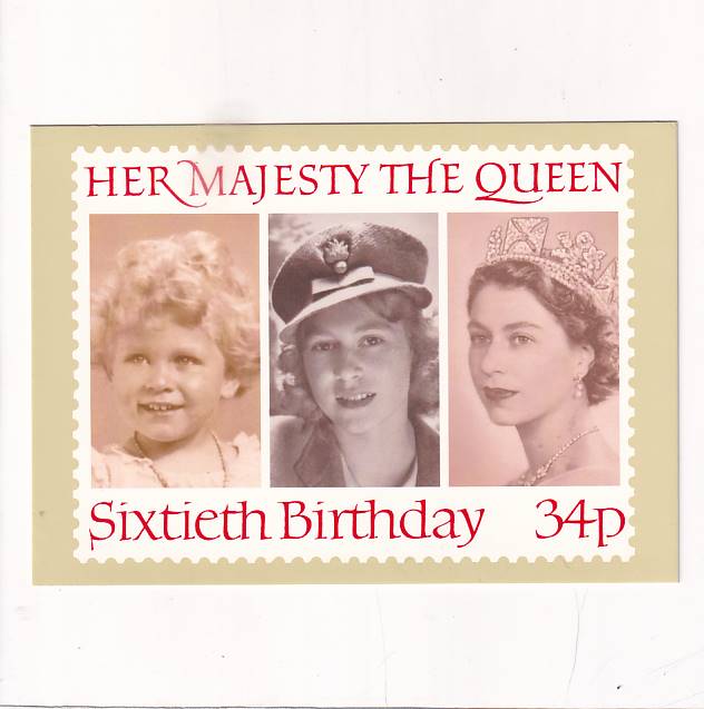 Pocztówka przygotowywana do karty maximum. Powstał taki sam znaczek z okazji 60-rocznicy urodzin królowej.