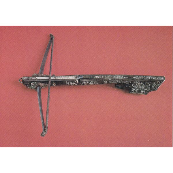 Kusza myśliwska, Dolna Saksonia lub Śląsk, XVI w., drewno orzechowe, żelazo, kość słoniowa, włókno.