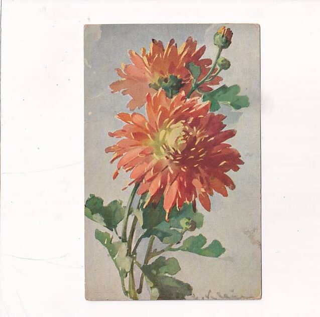 KWIATY DALIE MALOWANE POCZTÓWKA A32291