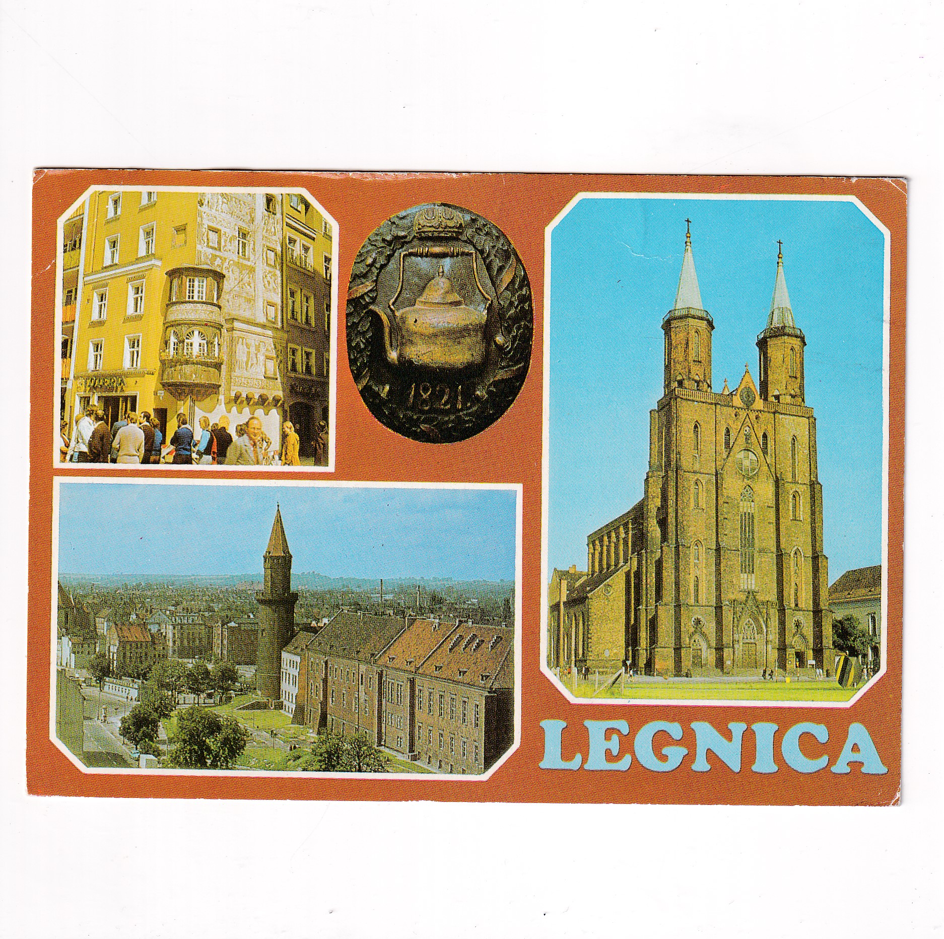 LEGNICA FRAGMENTY MIASTA ZAMEK DOM POD PRZEPIÓRCZYM KOSZEM WIDOKÓWKA A9002