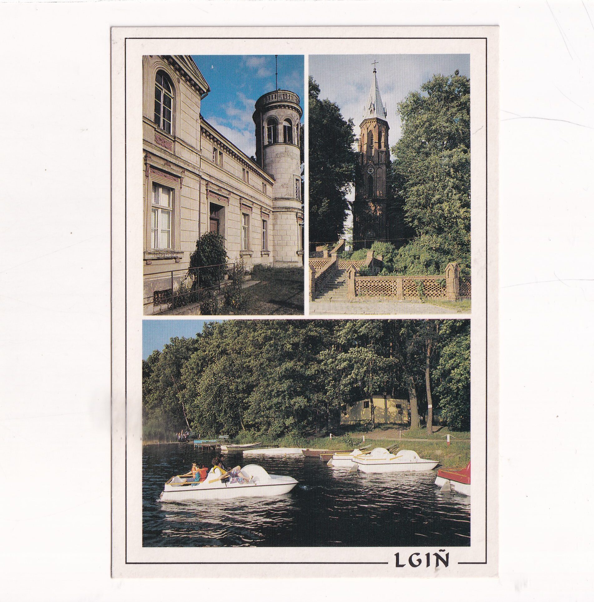 LGIŃ KOŚCIÓŁ DWÓR JEZIORO LGIŃSKIE POCZTÓWKA A20058