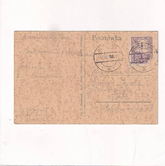 Stan jak na skanie, z obiegu.Rok 1924. Format:14*9cm.Wysłano w 1927r