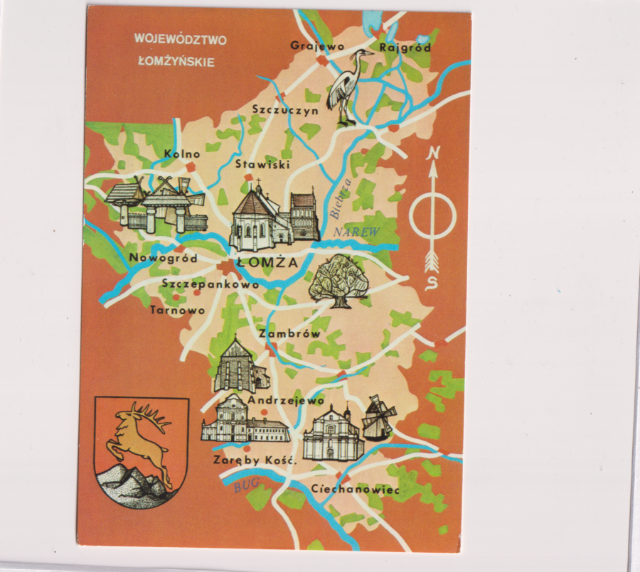 / ŁOMŻA WOJEWÓDZTWO HERB MAPKA POCZTÓWKA A92502