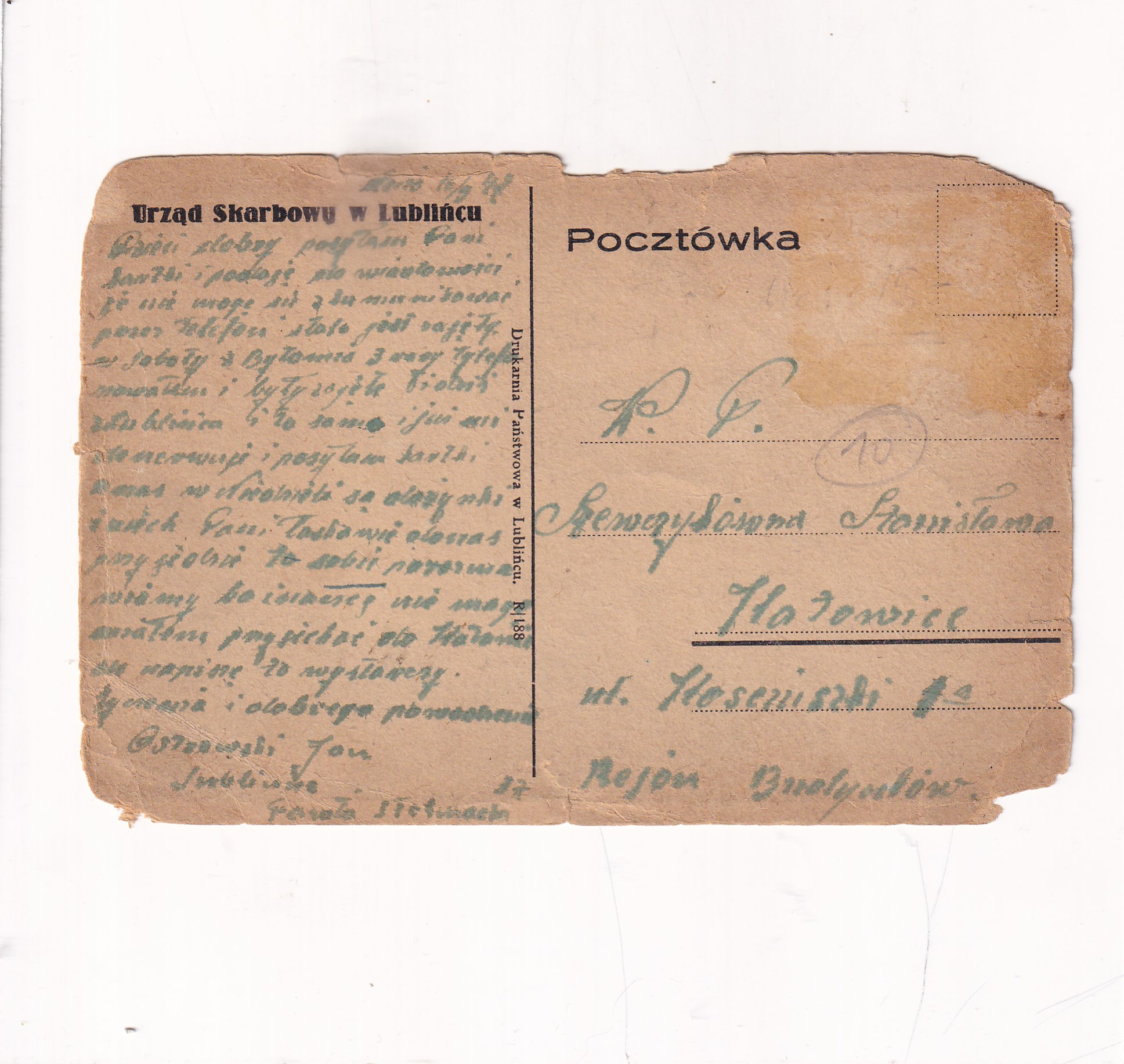 LUBLINIEC URZĄD SKARBOWY POCZTÓWKA A9616