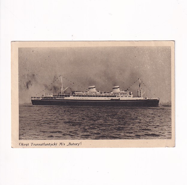 m/s Batory na widokówce.Format:14*9cm. Wysłano w 1947r