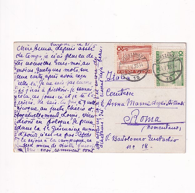 Stan jak na skanie, z obiegu.Wysłano do Rzymu w 1938r. Dwa znaczki,stemple.
