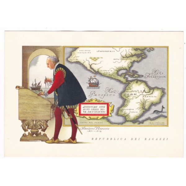 REPUBLICA DEI RAGAZZI MAPKA AMERYKA AMERIGO VESPUCCI POCZTÓWKA A30458