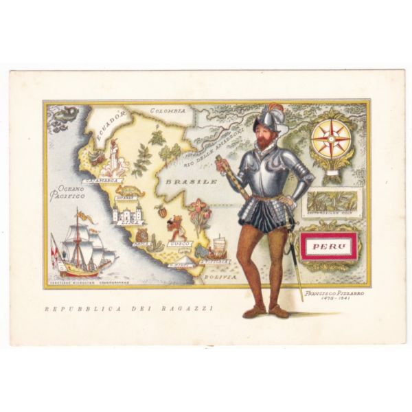 REPUBLICA DEI RAGAZZI MAPKA PERU FRANCISCO PIZZARRO POCZTÓWKA A53382