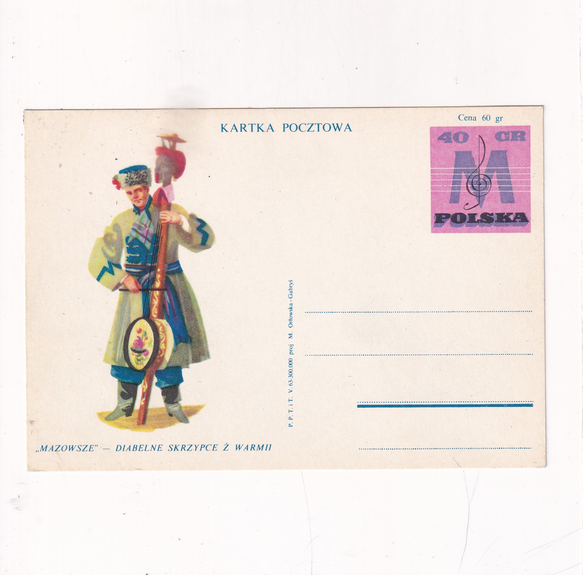 MARIA ORŁOWSKA-GABRYŚ „MAZOWSZE” TAŃCE LUDOWE DIABELSKIE SKRZYPCE Z WARMII KARTKA POCZTOWA A87374