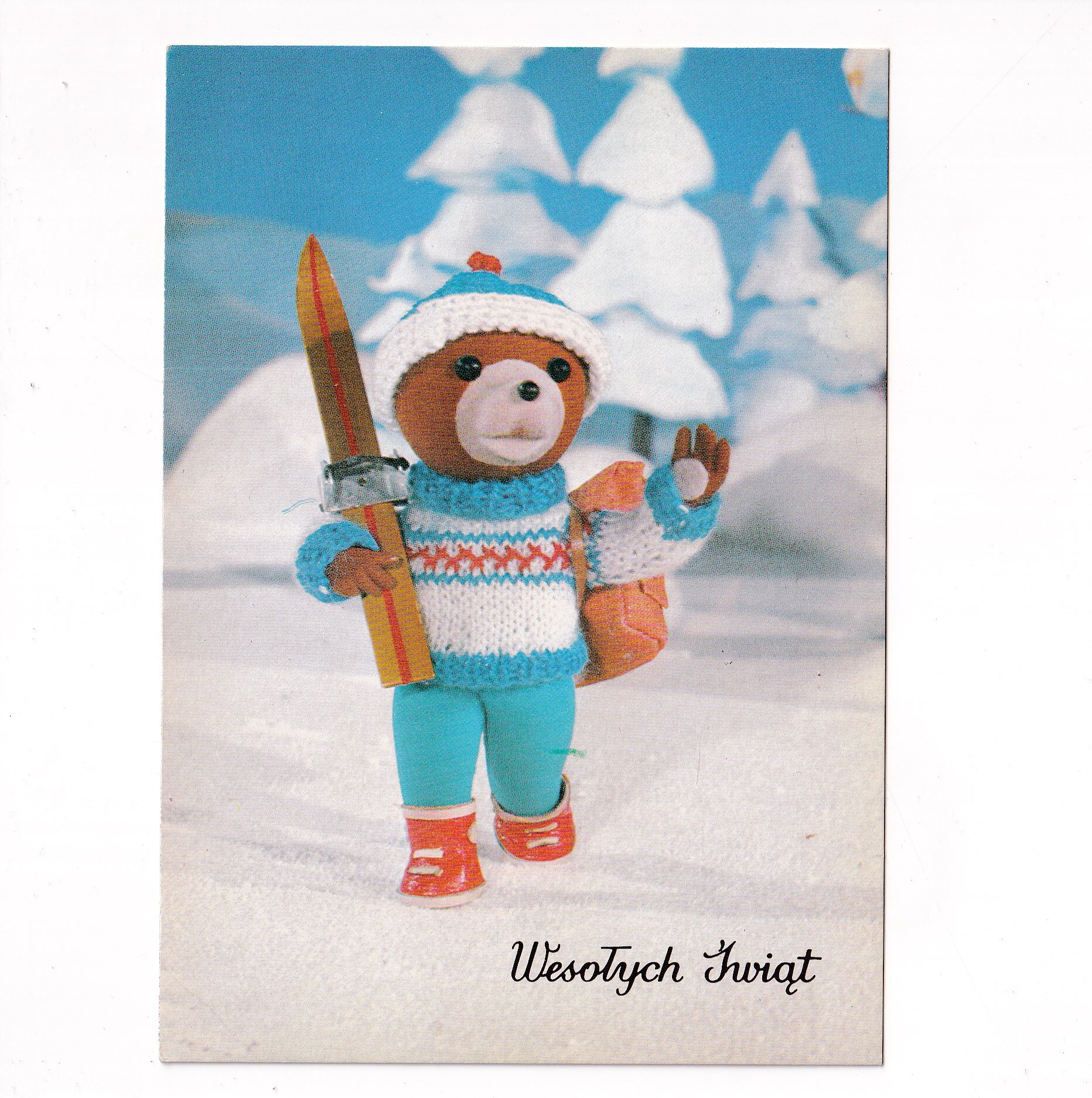 MIŚ USZATEK ŚWIĘTA ZIMA NARTY POCZTÓWKA KOM-725