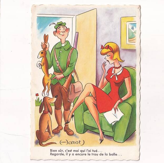 / MYŚLIWY HUMOR KOBIETA PIES POCZTÓWKA GRAF-1666