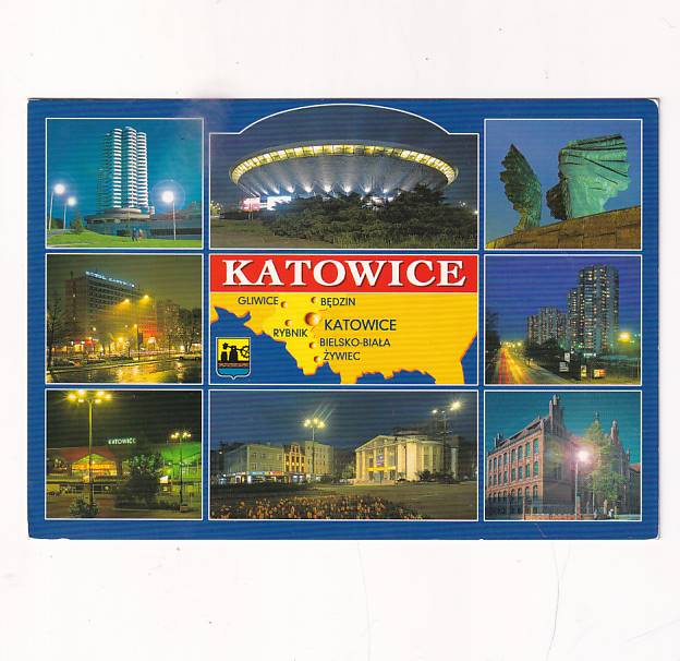 / NEONY KATOWICE MIASTO NOCĄ HERB MAPKA WIDOKÓWKA A36080