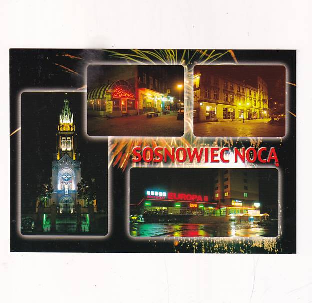 NEONY SOSNOWIEC MIASTO NOCĄ POCZTÓWKA 01407