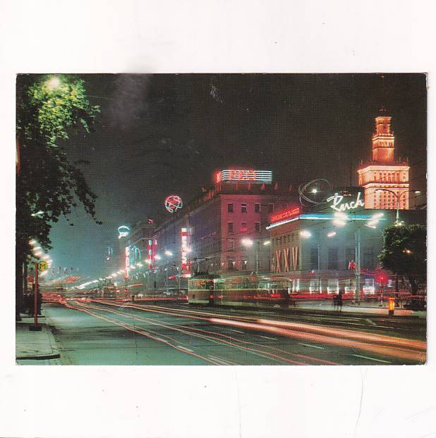 NEONY WARSZAWA MIASTO NOCĄ ALEJE JEROZOLIMSKIE POCZTÓWKA A32578
