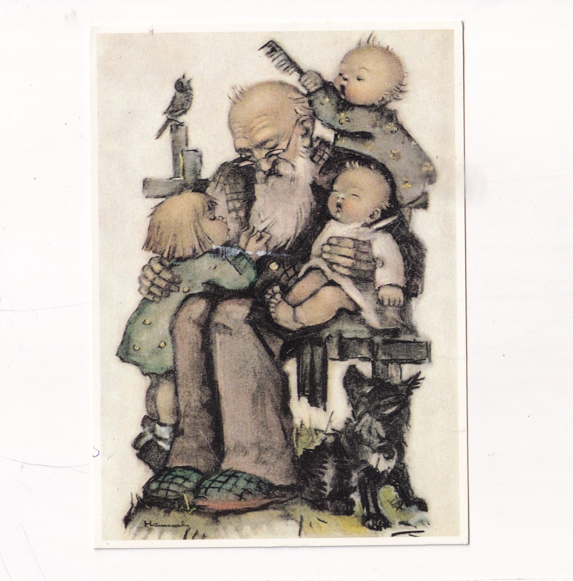M.I.HUMMEL ORYGINAŁ NR.62.1152 DZIECI DZIADEK REPRINT POCZTÓWKA A8408
