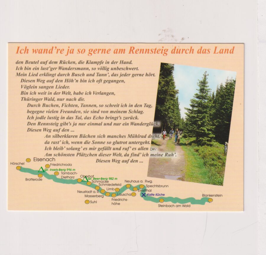 / NIEMCY MAPKA SZLAK EISENACH DAS RENNSTEIG- LIED POCZTÓWKA A3442