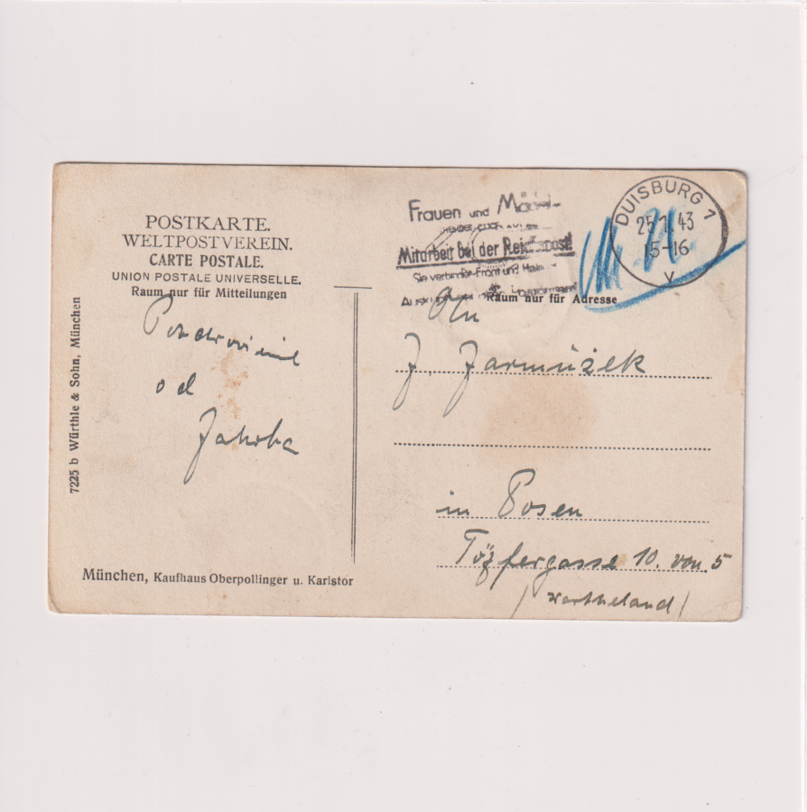 Stan jak na skanie, z obiegu. Pieczątki.Nadano 25.1.1943 Znaczki