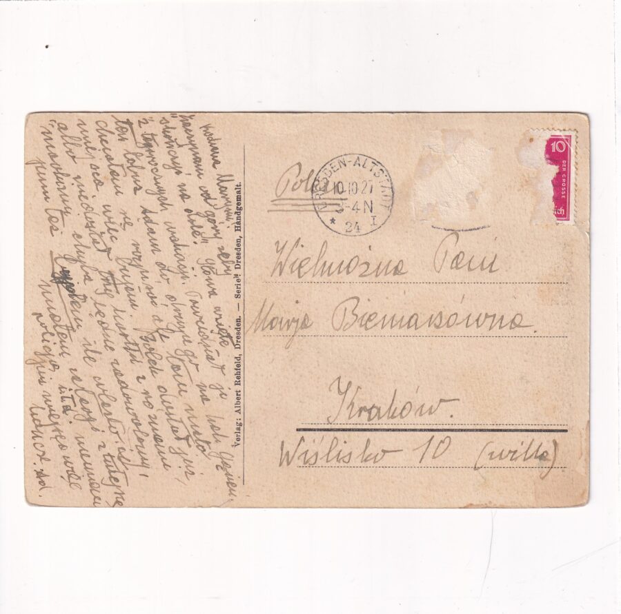 Stan jak na skanie, z obiegu. Przedwojenna. 10.10.27r. Znaczek oderwany,stempel.