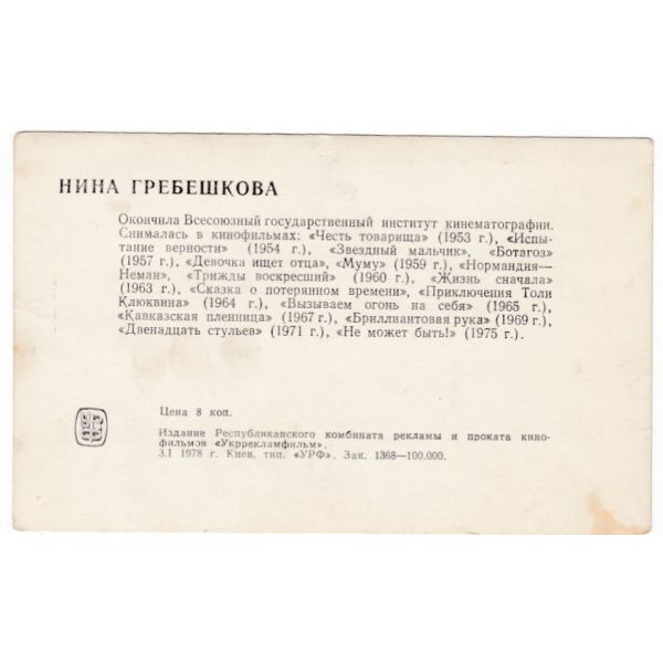 NINA GREBESZKOWA AKTORKA POCZTÓWKA A44987