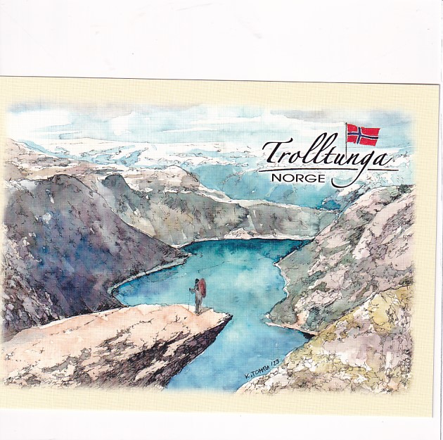 NORWEGIA LATARNIE MORSKIE TROLLTUNGA WIDOKÓWKA AKWARELA CZ-NORGE-01