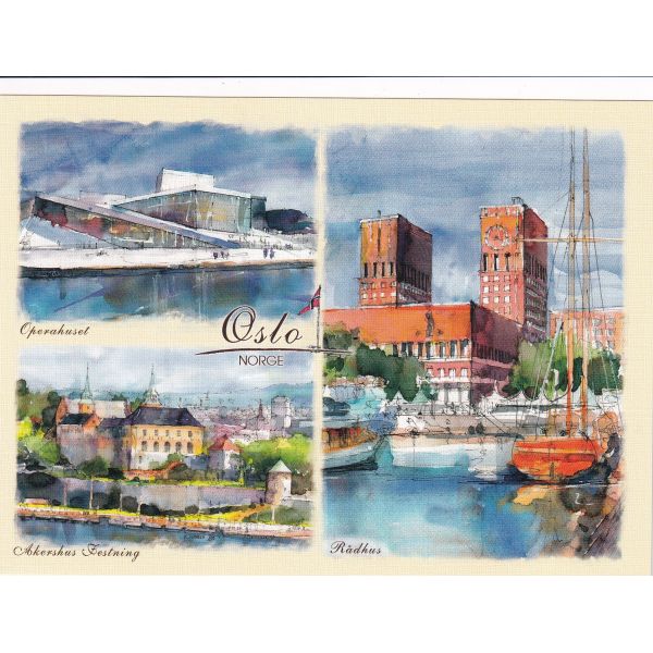 NORWEGIA OSLO WIDOKÓWKA AKWARELA CZ-OSLO-06