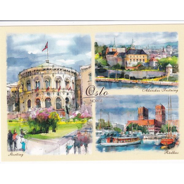 NORWEGIA OSLO WIDOKÓWKA AKWARELA CZ-OSLO-07
