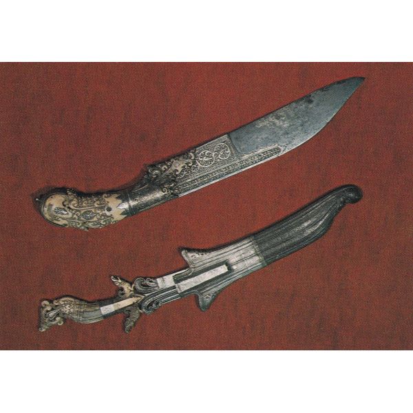 Noże w srebrnych, cyzelowanych oprawach, rękojeści z kości słoniowej, Cejlon , XVIII w.